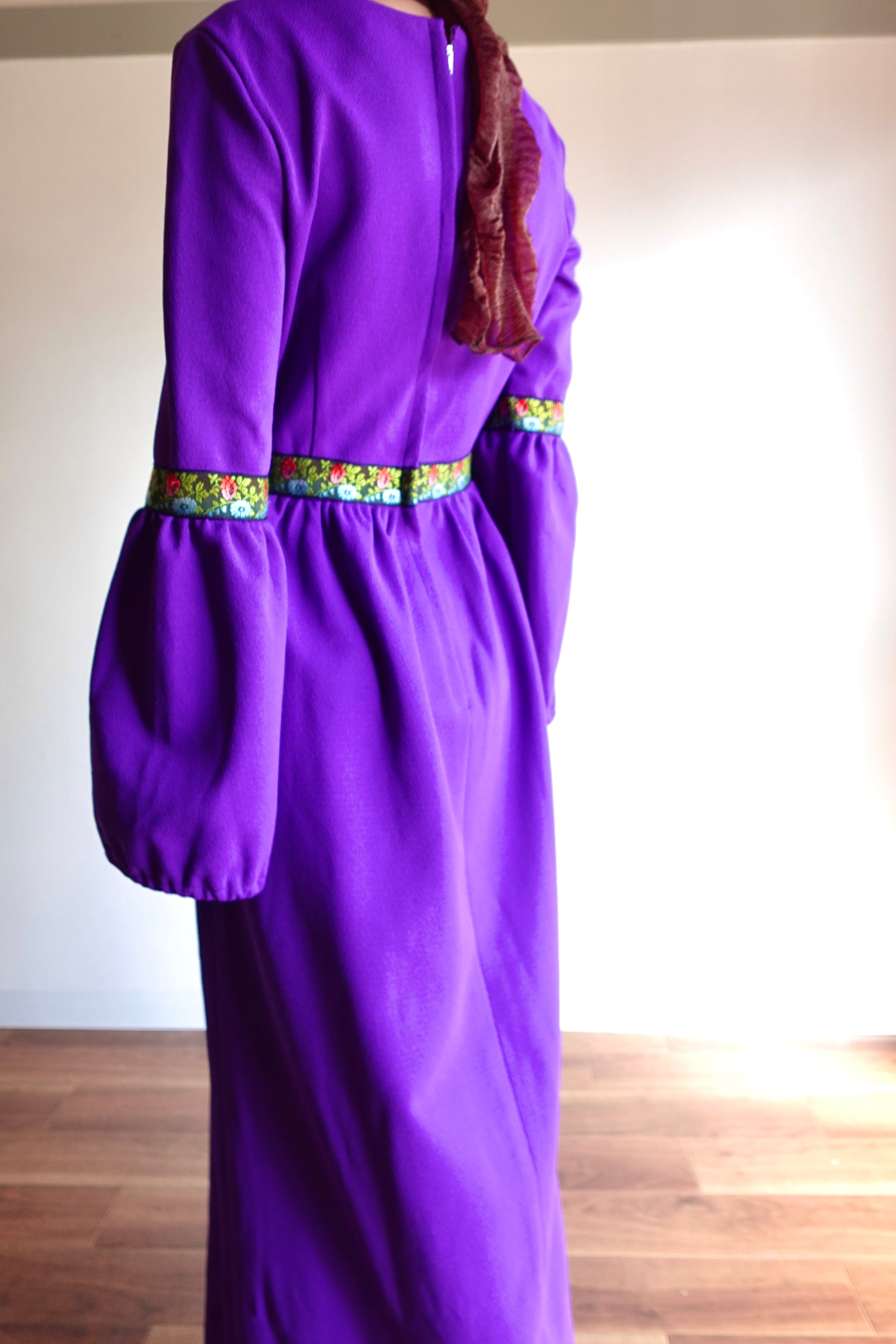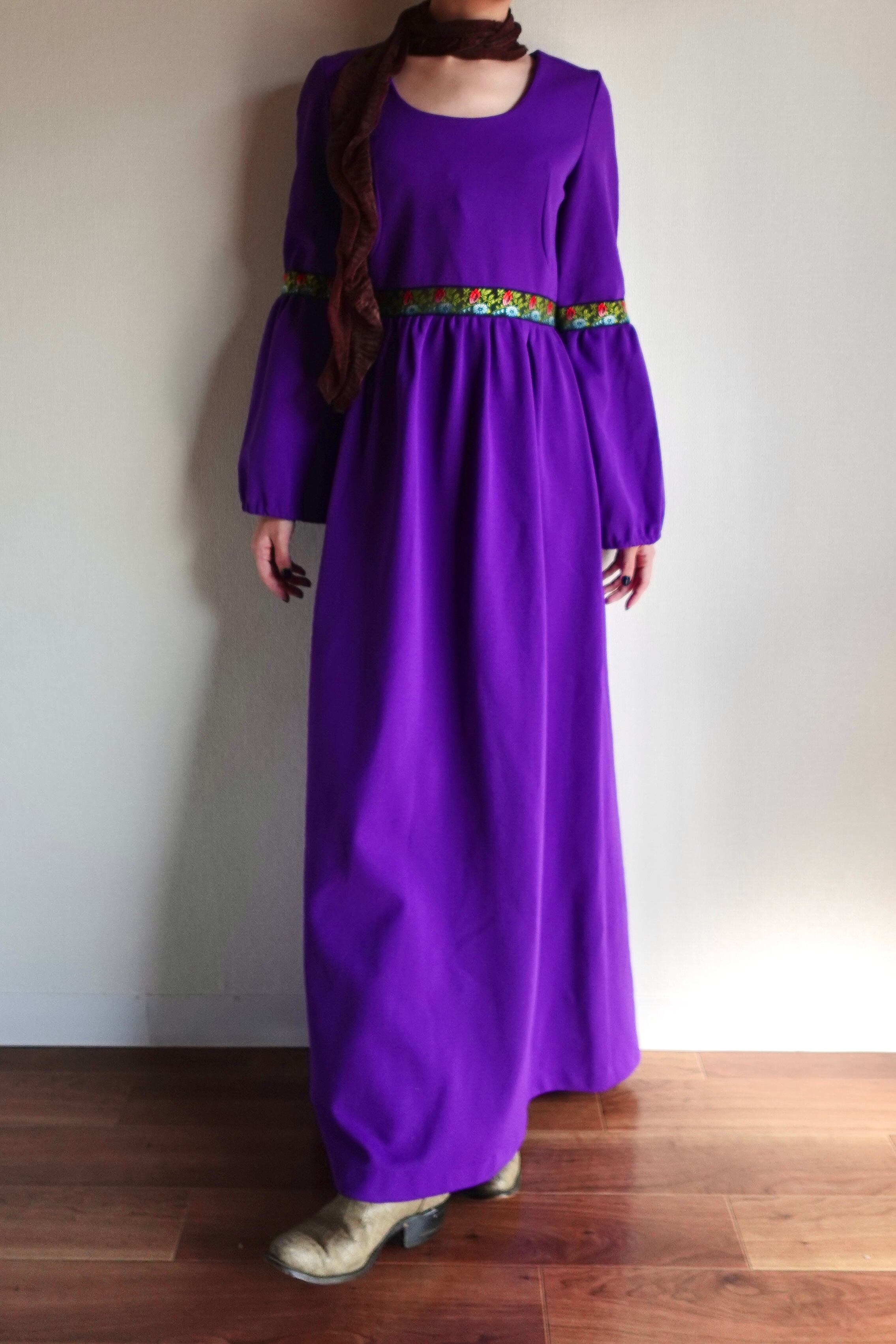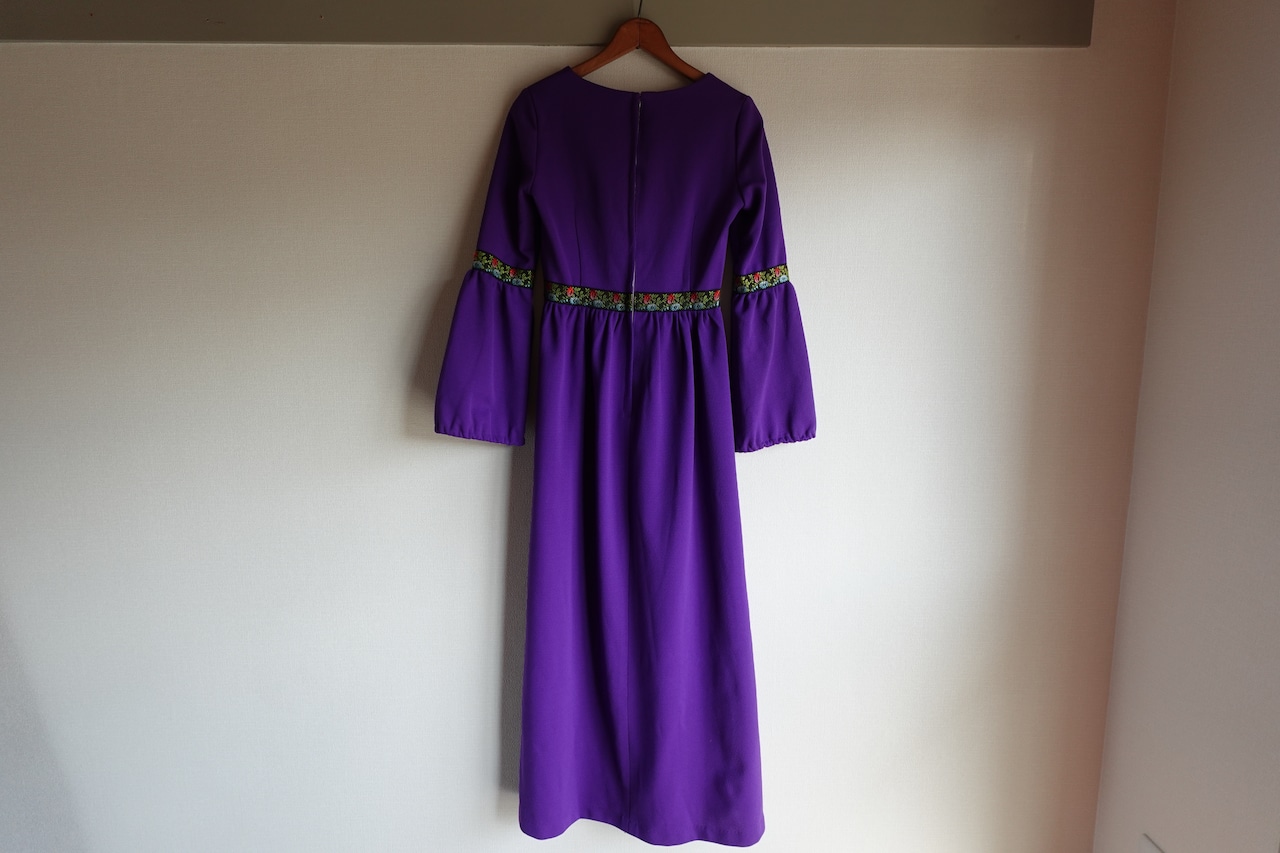 1970sの鮮やかなパープルが目を惹くドレス。